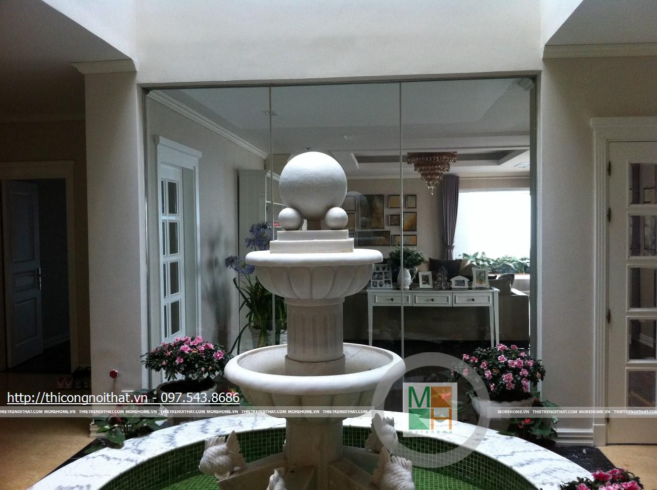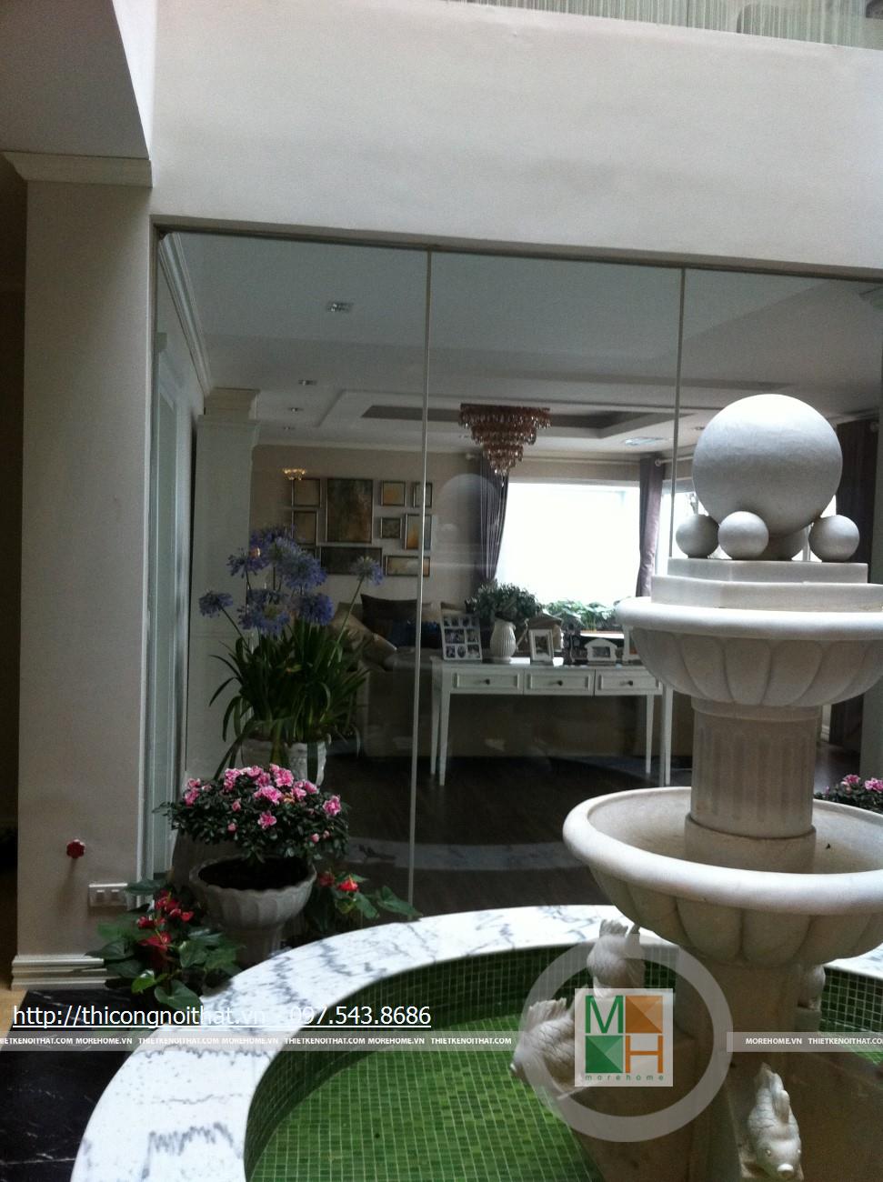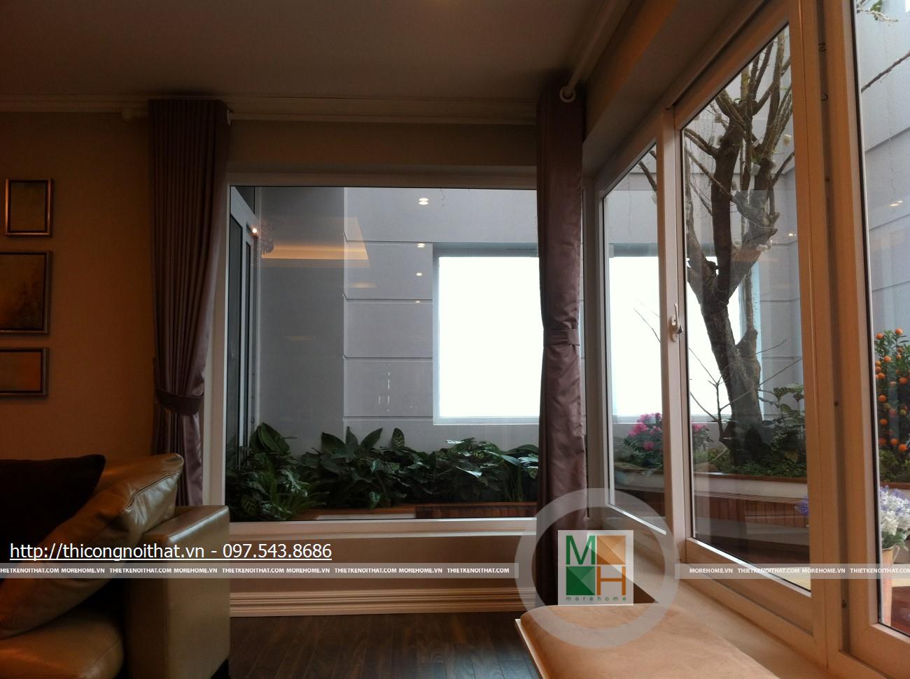 Phòng ngủ nhà anh Cường còn thật sự lãng mạn khi từ đây bước tới cánh cửa kính bạn sẽ thấy 1 không gian đầy ắp thiên nhiên với vườn hoa rực rỡ. Với cách lắp đặt cửa kính này, vào những ngày nghỉ hay khi thư giãn trên chiếc giường ngủ êm ái, bạn vẫn có thể ngắm nhìn những bông hoa đang đua sắc. Anh Toàn còn là 1 người rất ưa thích thiên nhiên, hoa cỏ khi anh đã đầu tư xây dựng cả 1 không gian tràn đầy thiên nhiên với cây cối, hoa lá và hòn non bộ ngay trong chính ngôi nhà của mình.