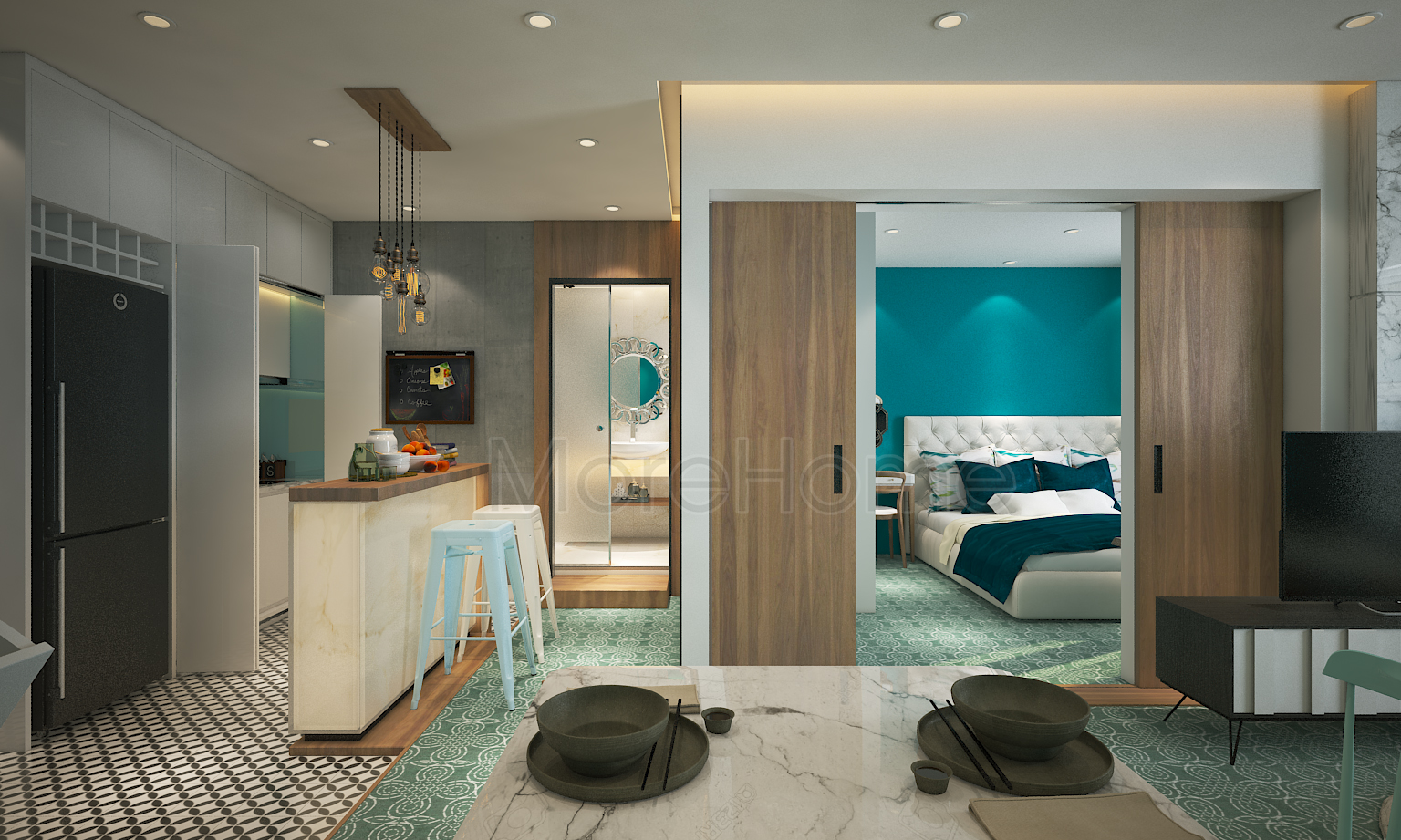 Thiết kế căn hộ sunrise city , Thiết kế nội thất căn hộ 1 phòng ngủ , Thiết kế căn hộ sunrise city đẹp , Thiết kế căn hộ tphcm