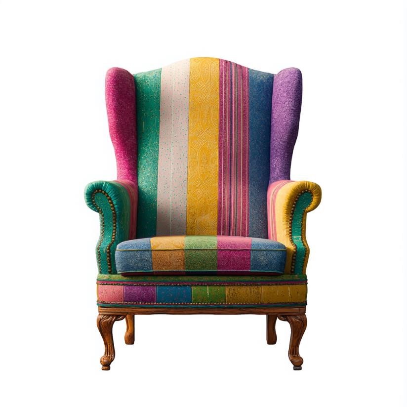 Với nền trắng tinh khôi làm điểm nhấn, chiếc ghế không chỉ là một vật dụng để ngồi mà còn là một phần của không gian nghệ thuật. Màu sắc đa dạng từ đỏ tươi đến các màu sắc sặc sỡ khác tạo ra một sự nổi bật đầy mê hoặc. Các họa tiết trên ghế cũng được lựa chọn kỹ càng, từ các đường chỉ khâu tỉ mỉ đến chất liệu vải tự nhiên mềm mại, tạo cảm giác thoải mái nhưng không kém phần sang trọng. Tất cả tạo nên một không gian thu hút mọi ánh nhìn, đầy đủ cả tính thẩm mỹ và tính ứng dụng.