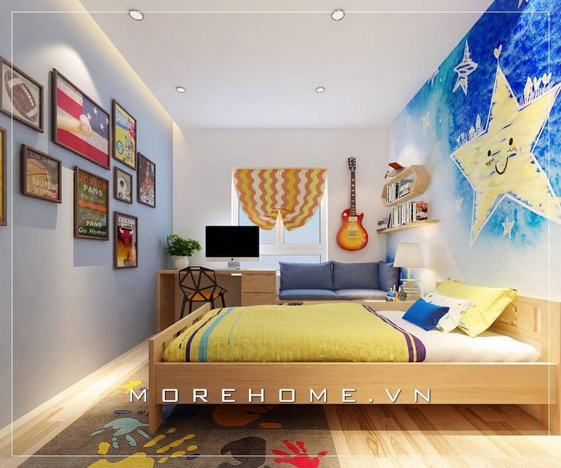 Thiết kế nội thất phòng ngủ con chung cư GoldMark City trẻ trung và năng động