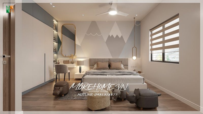 Một không gian phòng ngủ được trang trí theo ý tưởng và sở thích của mình thì thật tuyệt và chỉ cần đưa ra ý tưởng còn mọi thứ đã được các kiến trúc sư Morehome sẵn sàng để mang tới không gian đúng như yêu cầu của gia chủ
