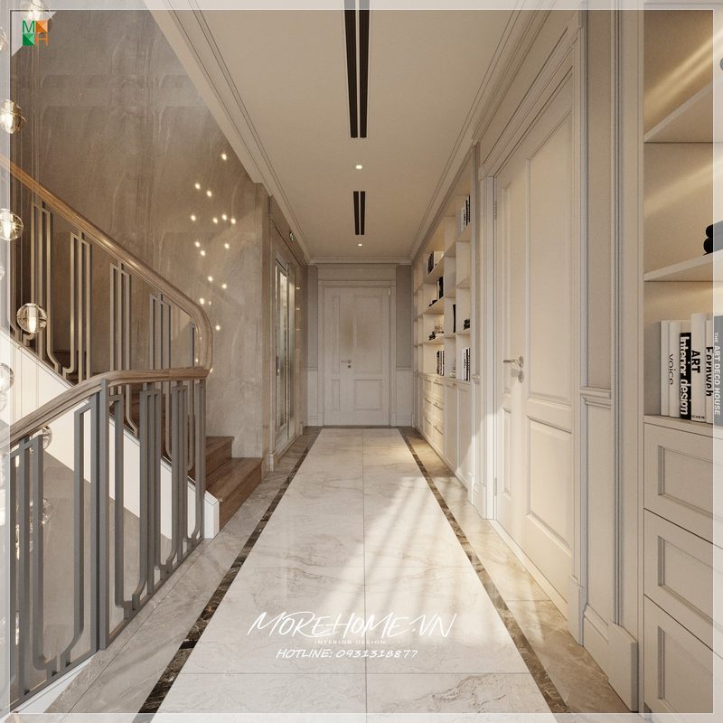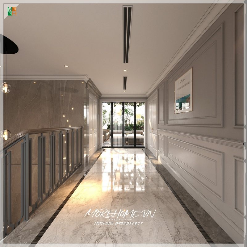 Trang trí hành lang tầng không gian di chuyển đi lại giữa các không gian phòng trong nhà với nhau mạch ngầm gắn kết, mang ý nghĩa phong thủy riêng