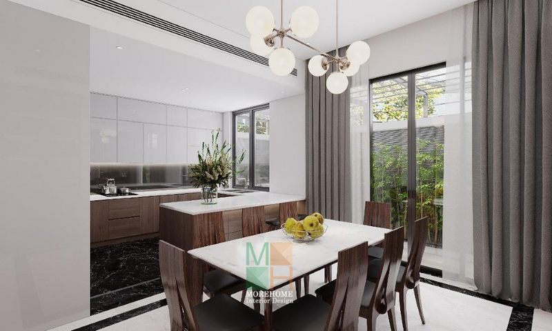 Mẫu thiết kế phòng bếp liền với phòng ăn cho những biệt thự cao cấp với phong cách quý tộc.