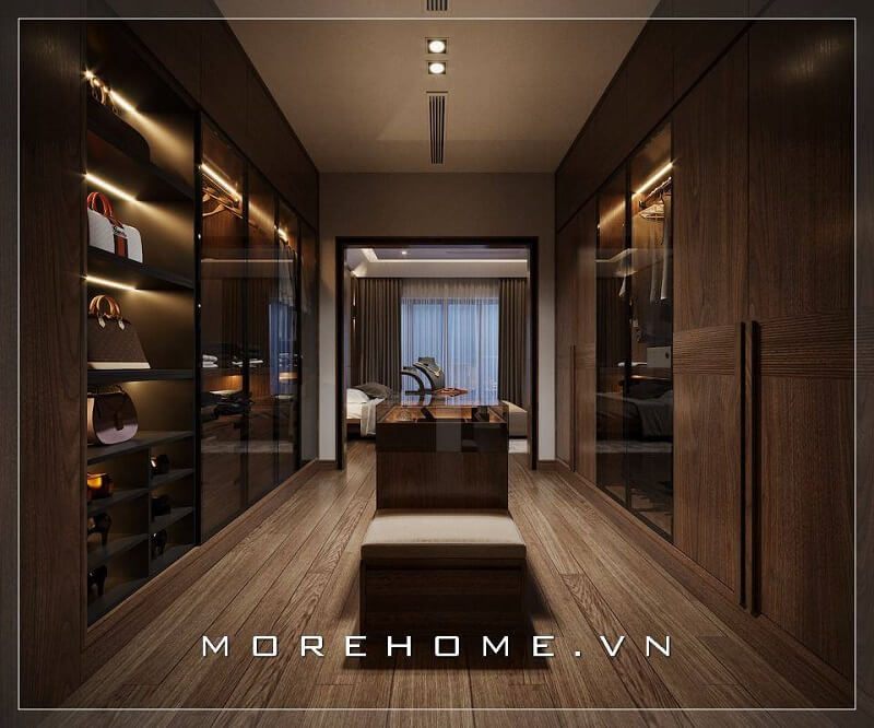 . Tủ quần áo gỗ với phong cách hiện đại, tông màu nâu trầm sang trọng và thiết kế tinh tế sẽ cuốn hút mọi ánh nhìn.
