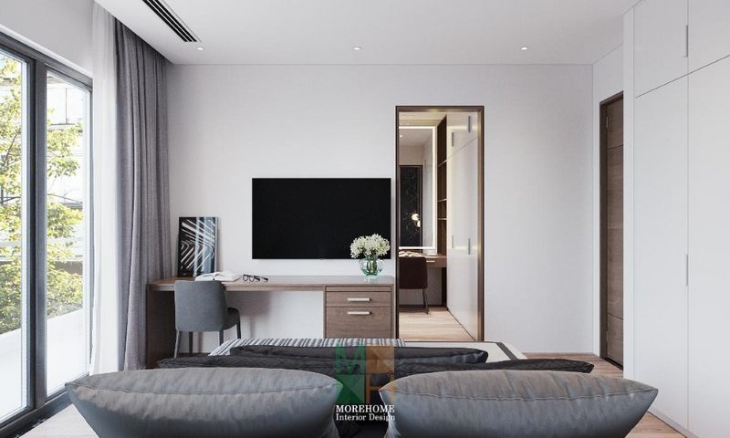 Để tạo nên một không gian phòng ngủ đặc biệt trong biệt thự, hãy sử dụng một giường gỗ óc chó kiểu dáng tân cổ điển sang trọng để làm nổi bật.