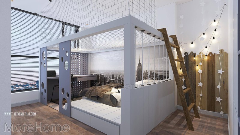 Thiết kế nội thất phòng ngủ trẻ em đóng vai trò rất quan trọng mang đến không gian vui chơi, học tập cho trẻ nhỏ. Đồng thời khi thiết kế đúng cách thì không gian đó sẽ kích thích trí tuệ của bé được phát triển. Mỗi không gian phòng ngủ sẽ khách nhau từ màu sắc, cách bày trí giữa bé trai và bé gái, do vậy trang trí nội thất là điều rất được chú ý đến. MoreHome- Công ty trang trí nội thất sài gòn uy tín, chuyên nghiệp mong muốn gửi gắm mọi không gian đẹp đến khách hàng. hãy cùng MoreHome chiêm ngưỡng các mẫu trang trí phòng ngủ trẻ em đẹp dưới đây: